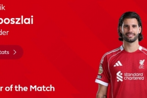 本場比賽索博斯洛伊打進精彩任意球,賽后當選英超官方球迷票選全場最佳球員。