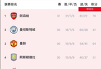 英超聯(lián)賽進入第30輪,爭冠格局逐漸明朗,阿森納本輪主場2-0戰(zhàn)勝埃弗頓,積70分穩(wěn)居榜首,領(lǐng)先曼城9分,進一步鞏固了冠軍優(yōu)勢。曼城本輪1-1戰(zhàn)平西漢姆聯(lián),追趕壓力驟增。與此同時,曼聯(lián)憑借3-1戰(zhàn)勝維拉穩(wěn)固了第三位,目前積54分。