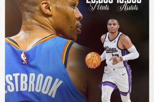 體育資訊11月16日訊 在昨天NBA杯國(guó)王VS森林狼的比賽中,威少生涯總助攻數(shù)突破10000次大關(guān),成為繼詹姆斯之后,NBA歷史第二位生涯取得25000分和10000助攻的球員。