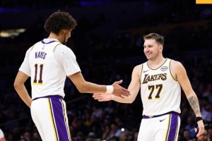 賽后,湖人官方社媒分享贏球海報(bào),并寫(xiě)道:“洛杉磯今晚很吵?!焙?bào)上,東契奇和海斯擊掌慶祝。