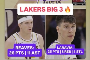 賽后,拉拉維亞轉(zhuǎn)發(fā)了湖人“三巨頭”的數(shù)據(jù),東契奇29分11籃板10助攻,里夫斯26分11助攻,拉拉維亞25分8籃板4搶斷。