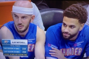 比賽中轉(zhuǎn)播方曬出一組數(shù)據(jù):本賽季阿杰伊·米切爾出戰(zhàn)14場比賽,已拿到234分。而上賽季阿杰伊一共只打了36場比賽,總共得到234分!