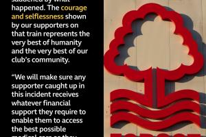 俱樂部老板馬里納基斯表示:“諾丁漢森林全體成員對發(fā)生的悲劇感到震驚和深切悲痛。我們的支持者在列車上展現(xiàn)的勇氣和無私,體現(xiàn)了最崇高的人性光輝和最寶貴的俱樂部社區(qū)精神?!?/p>