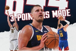 算上這4記三分,約基奇掘金生涯三分命中數(shù)來到844記,超越波特(843),來到隊史第二位,僅次于穆雷(1181)。