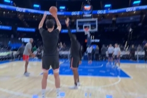 GIF-楊瀚森賽前熱身三分4連擊