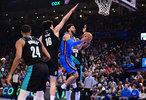 本場比賽楊瀚森在首節(jié)最后1分鐘登場,半場出戰(zhàn)5分鐘,命中生涯首記三分,第三節(jié)楊瀚森未獲登場機(jī)會,末節(jié)則是在球隊大比分落后獲得了一整節(jié)的機(jī)會,有夢幻腳步打哈滕2+1,還有空接單臂暴扣的表現(xiàn)。