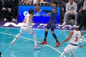 GIF-拉梅洛·鮑爾欲單手秒傳 直接結(jié)結(jié)實(shí)實(shí)砸到了布倫森的腦袋