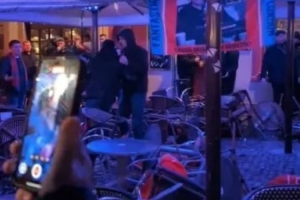 現(xiàn)場(chǎng)畫(huà)面顯示,這些球迷在加約集市廣場(chǎng)投擲咖啡館座椅、互相斗毆,導(dǎo)致周邊商鋪窗戶被砸碎,玻璃遍地,附近酒吧被迫緊急停業(yè)。