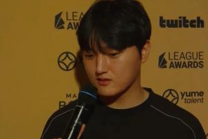 體育資訊11月29日訊?由LEC主持人Sjokz和twitch著名主播Caedrel主辦的聯(lián)盟頒獎(jiǎng)典禮(League Awards)北京時(shí)間今晨公布各獎(jiǎng)項(xiàng)評選結(jié)果,T1戰(zhàn)隊(duì)參加頒獎(jiǎng)典禮,Peyz選手接受采訪。
