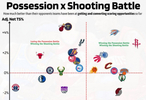 橫軸往右代表能比對(duì)手獲得更多出手 縱軸向上是比對(duì)手終結(jié)效率更高