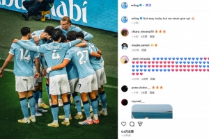 哈蘭德也在賽后通過(guò)社媒曬出全隊(duì)相擁慶祝照,并配文:“今天并不容易,但我們從不放棄!”