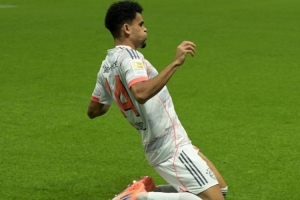 第44分鐘,金玟哉送出精準(zhǔn)長傳,迪亞斯禁區(qū)內(nèi)倒地完成做球,格雷羅順勢撩射破門。