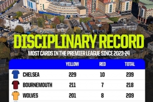 體育資訊12月1日訊 數(shù)據(jù)網(wǎng)站OPTA盤點了英超球隊自23/24賽季以來吃牌榜,其中切爾西229黃10紅,兩項數(shù)據(jù)均為最多,具體榜單如下: