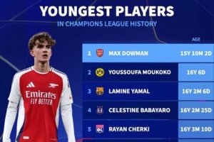 體育資訊11月5日訊 歐冠聯(lián)賽階段第4輪比賽,阿森納在客場(chǎng)以3-0的比分完勝布拉格斯拉維亞。本場(chǎng)比賽,阿森納15歲小將道曼替補(bǔ)登場(chǎng)成歐冠歷史出場(chǎng)最年輕球員。