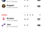 另外兩場西部的比賽上半場結(jié)束,獨(dú)行俠69-68掘金,濃眉半場21分6籃板。爵士68-57火箭,馬爾卡寧16分5籃板。
