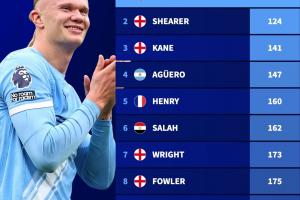 體育資訊12月03日訊 曼城vs富勒姆第17分鐘,哈蘭德破門,這是他生涯英超百球!哈蘭德成為史上最快達成英超百球的球員!