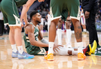 此役,雄鹿巨星字母哥開場3分鐘出現受傷情況,因右小腿拉傷退出本場比賽。