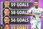 據(jù)外媒Score90的數(shù)據(jù)統(tǒng)計(jì),姆巴佩2025年已經(jīng)為皇馬打入了55個(gè)進(jìn)球,這數(shù)據(jù)在皇馬歷史自然年進(jìn)球榜上排名第四,距離排名第一的C羅僅差4球,而姆巴佩今年還剩下5場(chǎng)比賽。姆巴佩近期狀態(tài)神勇,5場(chǎng)進(jìn)4球感覺還是穩(wěn)的,這意味著姆巴佩有望超過C羅成為皇馬歷史自然年進(jìn)球榜新的第一。
