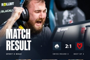 隨后雙方比分交替上升,第21回合sh1ro+donk聯(lián)手三殺守住A點(diǎn),次回合MOUZ搏命打B點(diǎn)下包,xertion1v3雙殺被tN1R水下補(bǔ)槍得手,Spirit拿到賽點(diǎn)。盡管torzsi一打二贏下殘局為MOUZ追回一個(gè)賽點(diǎn),但sh1ro關(guān)鍵A大雙殺配合tN1R雙人四殺,Spirit13-11拿下圖三,大比分2-1戰(zhàn)勝M(fèi)OUZ,Spirit瑞士輪三連勝晉級(jí)淘汰賽,MOUZ進(jìn)入2-1組。