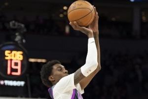 談及麥克丹尼爾斯中距離投籃的出色表現(xiàn),芬奇表示:“他具備絕佳的身高條件,手感非常柔和,投籃弧線很高。他擁有一名優(yōu)秀中距離射手的所有特質(zhì) —— 能穩(wěn)定找到自己的投籃點,動作從容可控,彈跳能力出色,起跳后很難有人能干擾到他的投籃?!?/p>