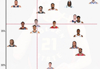 縱坐標為三分命中率,橫坐標為籃下防守率。
