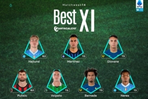 體育資訊12月9日訊 意甲第14輪戰(zhàn)罷,聯(lián)賽官方評本輪最佳陣,霍伊倫、勞塔羅、普利西奇在列。