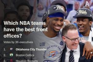 體育資訊12月10日訊 The Athletic邀請了聯(lián)盟中的36位高管對聯(lián)盟中各支球隊(duì)的管理層進(jìn)行了排名,雷霆管理層連續(xù)兩年排名第一。