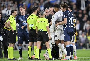 皇馬0-2不敵塞爾塔的比賽,弗蘭·加西亞兩次染黃被罰下,卡雷拉斯抗議判罰被直紅罰下。恩德里克替補(bǔ)席抗議也吃到直紅,卡瓦哈爾則是在球員通道批評(píng)裁判。