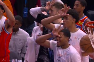 GIF-雷霆爆炸!!杰倫威壓哨三分轟進(jìn)!