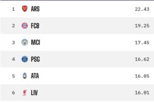 體育資訊12月11日訊 歐冠結(jié)束聯(lián)賽階段前6輪的爭奪,數(shù)據(jù)機構(gòu)Opta預(yù)測了歐冠聯(lián)賽階段的最終排名。
