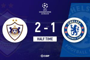 上半場傷停補時3分鐘,半場結(jié)束,切爾西暫1-2卡拉巴赫。