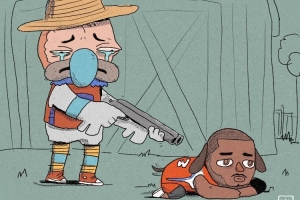 注:該球迷畫了很多快船輸球后吉祥物頹廢擺爛的搞笑漫畫,快船每輸一場,他就畫一幅,今天的插圖都是他畫的。