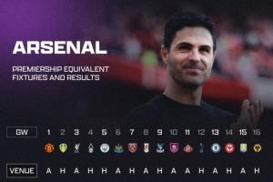 英超戰(zhàn)至第16輪,阿森納2分領(lǐng)跑英超積分榜,有媒體對(duì)比了阿森納本賽季前16輪比賽,與上賽季相同賽程的16場(chǎng)比賽的戰(zhàn)績(jī)。