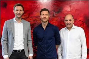 圖左至右:勒沃庫森總監(jiān)羅爾費(fèi)斯,阿隆索,CEO卡羅