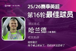 2025-2026賽季英超火熱進(jìn)行中,體育資訊和咪咕體育聯(lián)合發(fā)起每輪英超最佳球員評(píng)選活動(dòng)!第16輪評(píng)選結(jié)果已經(jīng)出爐,曼城前鋒哈蘭德當(dāng)選!