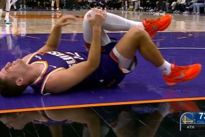 GIF-庫明加突破過程中 撞到了吉萊斯皮的膝蓋內(nèi)側(cè)!