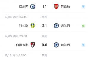本場過后,切爾西5輪僅1勝積29分,落后榜首阿森納7分,身后4隊(duì)26分。