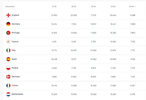 北京時間今天凌晨,隨著歐冠聯(lián)賽階段第四輪比賽全部結(jié)束,歐足聯(lián)官方也更新了歐戰(zhàn)本賽季最新積分,其中,英格蘭居首,德國、葡萄牙分列二三,塞浦路斯第四。