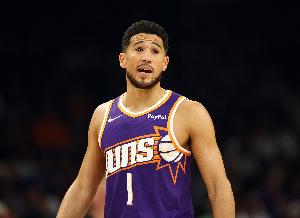 太陽主將布克上半場表現(xiàn)出色,進(jìn)攻上相當(dāng)穩(wěn)健,面對勇士后衛(wèi)單打成功率非常高,還能為隊友送出助攻。