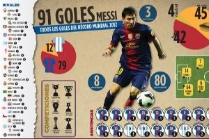 2012年12月22日,梅西在巴薩3-1巴拉多利德的比賽中破門,打進(jìn)自己在2012年的第91球,以69場91球的數(shù)據(jù)超過蓋德-穆勒6球,刷新足壇歷史自然年進(jìn)球紀(jì)錄。在那年的比賽中,梅西還送出了24次助攻。