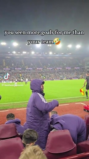 下半場在替補(bǔ)席上,B費(fèi)遭到場邊維拉球迷的嘲諷,他笑著站起來與維拉球迷“互動”。