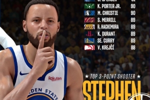體育資訊12月24日訊 今日NBA 2K官方曬出了最新聯(lián)盟三分能力值前十球員,具體如下: