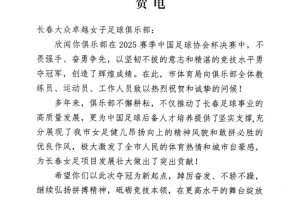 體育資訊12月24日訊 長春大眾卓越女足獲得2025年女子足協(xié)杯冠軍,長春市體育局、長春市足球協(xié)會送上祝賀。