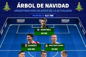 體育資訊12月25日訊 圣誕節(jié)之際,德國(guó)轉(zhuǎn)會(huì)市場(chǎng)排出了阿根廷身價(jià)最高圣誕樹陣容,勞塔羅、阿爾瓦雷斯、恩佐、麥卡利斯特在列。