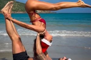 特拉普與未婚妻巴西超模古拉特頭戴圣誕帽,在海灘上展示阿克羅瑜伽高難度動(dòng)作,特拉普社媒曬出視頻,配文:“我們的熱帶圣誕節(jié)傳統(tǒng),祝愿你與所愛(ài)之人共度美好時(shí)光,節(jié)日快樂(lè)!”