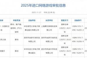 體育資訊12月25日訊 今日國家新聞出版署公開了2025年12月的國產(chǎn)網(wǎng)絡游戲版號審批信息。共144款國產(chǎn)網(wǎng)絡游戲、3款進口網(wǎng)絡游戲過審,還有7款游戲變更審批信息。