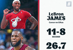 詹姆斯:11勝8負(fù) 場(chǎng)均26.7分7.5籃板7.2助攻