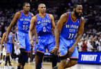 為節(jié)省400萬(wàn)美元,球隊(duì)放走最佳第六人哈登,留下正值巔峰的威少,與杜蘭特組成雙核。