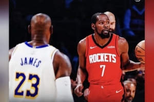 火箭前鋒杜蘭特在賽后采訪中談到與詹姆斯的交鋒時說道:“我對于我們之間的每次交手都心懷感恩?!?/p>