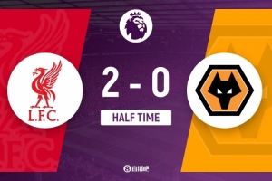 體育資訊12月27日訊 北京時間12月27日23:00,英超聯(lián)賽第18輪利物浦迎戰(zhàn)狼隊的比賽在安菲爾德球場進行,上半場?;倏硕瞪渲兄?,麥卡利斯特抽射中柱,弗林蓬助攻赫拉芬貝赫抽射破門,?;倏酥ゾS爾茨打進紅軍首球,半場結(jié)束,利物浦2-0狼隊。